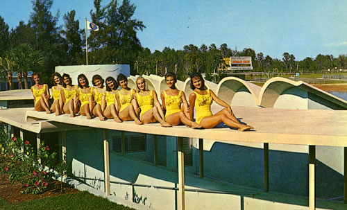 The Weeki Wachee mermaids pose on the clamshell roof of the million dollar theater that ABC built in 1960.